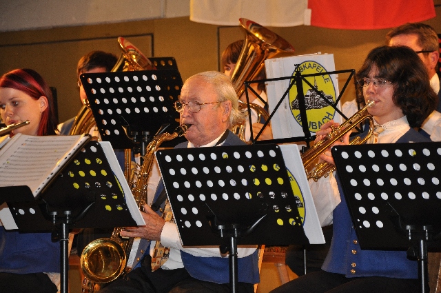 Blaskapelle Maibach Erich Köhler (Mitte) komponierte alle Stücke, die die Maibacher an diesem Abend darboten.